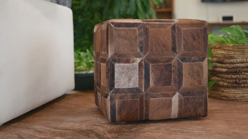 Cowhide Ottoman/ Pouf - Brindle Dark