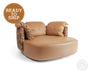 Swivel Leather Love Chair with Hair On Cowhide Accents - Toffee