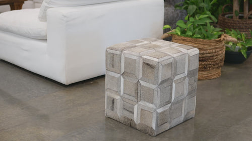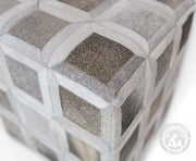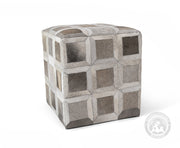 Cowhide Ottoman/ Pouf - Grey Mix Squares