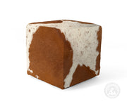 Cowhide Ottoman/ Pouf - Brown & White