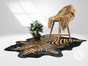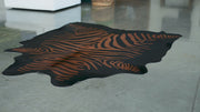 Zebra Beige Stripes On Dyed Black Cowhide Rug