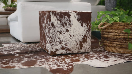 Cowhide Ottoman/ Pouf - Salt and Pepper Brown and White