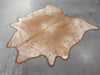 Leather Binding Beige Exotic Cowhide Rug Size 7.0 X 6.6 ft