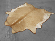 Leather Binding Beige Exotic Cowhide Rug Size 7.11 X 7.6 ft