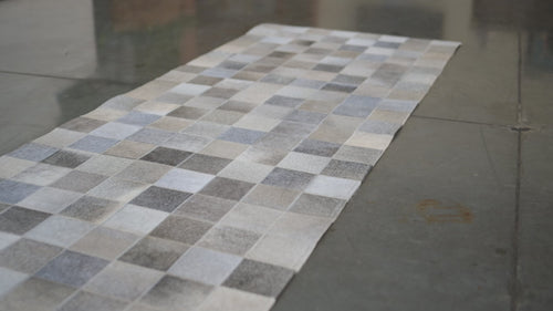 Grey - Designer Rug - Runner - Squares