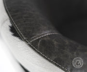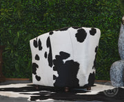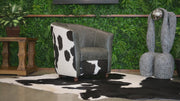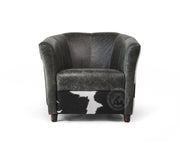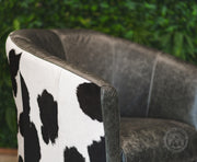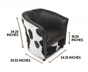 Leather Barrel Chair with Hair On Cowhide Accents - Black and White