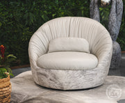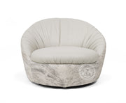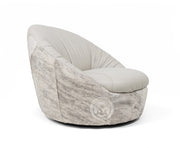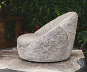 Leather Swivel Chaise Chair on Cowhide Accents - Grey