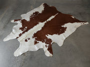 Premium Brazilian Hereford Brown and White Cowhide Rug Size 7.6 X 8.4 ft