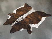 Premium Brazilian Brindle Brown and White Cowhide Rug Size 7.9 X 7.9 ft