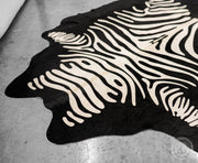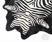 Zebra White Stripes On Dyed Black Cowhide Rug
