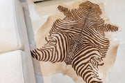 ZEBRA BROWN STRIPES ON BEIGE COWHIDE RUG